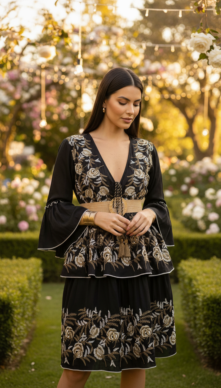 • ✨ Handcrafted Touch: Beautiful embroidered details spread all over the dress, adding unique artisanal charm.