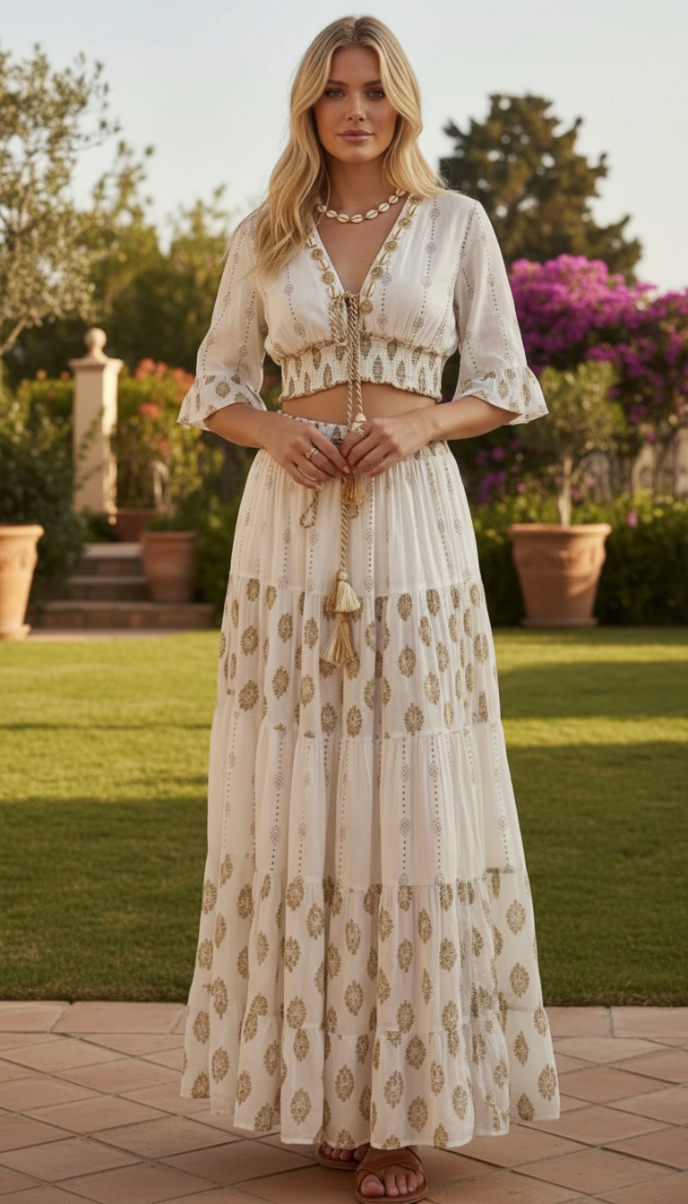 Aurora Golden Embroidered Boho Set